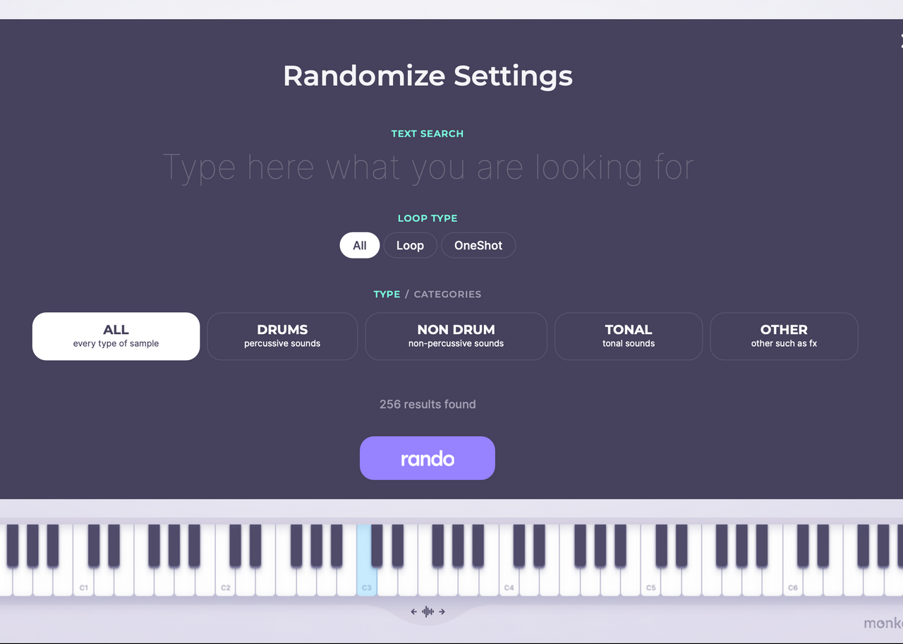 Need some inspiration or add that something unexpected? Click Rando and get a unique blend of your samples in a complete new context. All pitched to the key of your project and loops synced to host tempo. Hello happy accidents!